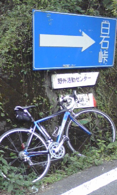「白石峠」と大きな看板のある分岐で右折するといよいよ約6.4kmの峠スタート。・・・あとはひたすら耐えて耐えて上りきったという記憶しか残っていない。踏んでも進まないので、引き足を無理やり使って足のつけねから持ち上げるような感覚でペダルを回したりしながら上る。最初の2kmがつらいとのことだが、2km越えてもそんなに楽になるわけでなく、ずっときつかった。200m刻みで距離を教えてくれる親切な看板があるのだが、終盤は苦しんでがんばってもぜんぜん進んでないことを証明してくれるので、逆につらく感じた。タイム計測はしていなかったが、サイコン見たかぎりだいたい40分近くかかったはず。足はつかなかったし、インナーロー(34-25)も使わずに上れたのは良かった。
