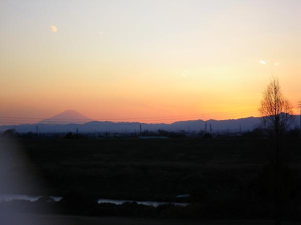 日没直後、入間大橋~上江橋のTT区間にて。日没直後の富士山がきれいだった。