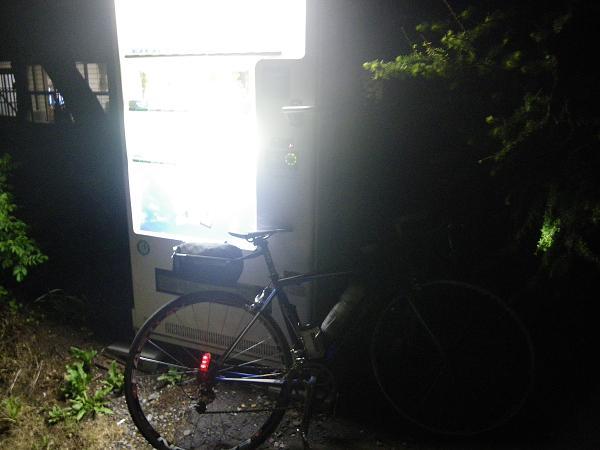 もうさっきから1kmは進んだろう、と思って見るとまだ500mしか進んでいなかったり。メーターが壊れているのではないかと思うくらい。永遠に続くかと思うような時間が経過し、20:25頃ようやく頂上へ。自販機があったのでスポーツドリンクで補給。