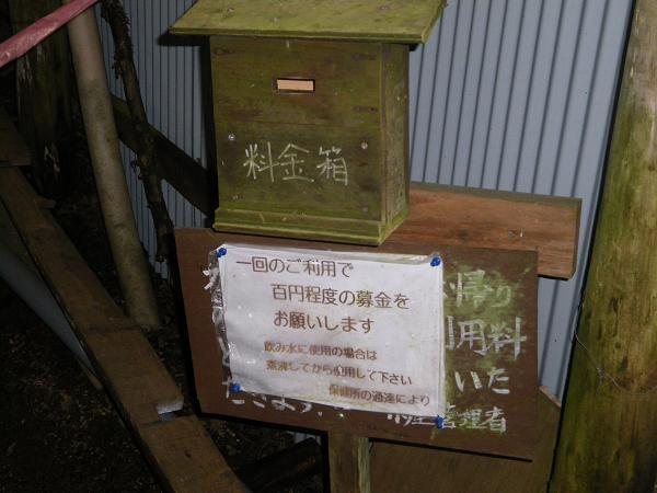コーヒーを頂く。アクエリアスも購入。両方300円ずつ。買ったペットボトルは小屋の裏の水場で冷やすシステム。水を使用する場合は寸志を入れる。