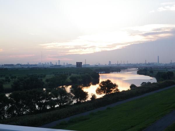 夜明けの彩魂大橋からの荒川。