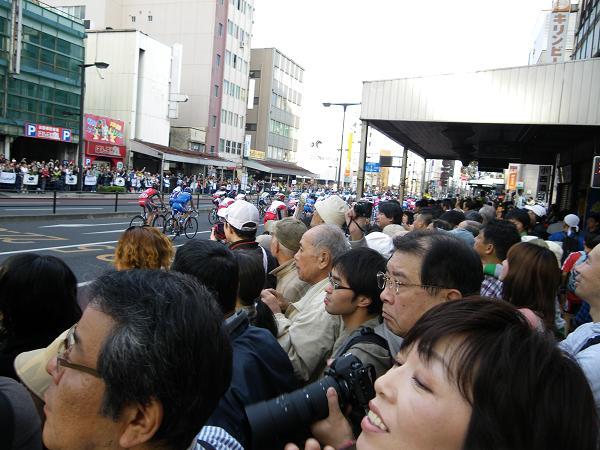 クリテリウムはめちゃくちゃ混んでいて、開始45分前から場所を探したが、人垣でまるで見えない。何とか3列目で見える場所を発見。しかし目前の10mくらいしか様子がわからず。来年もやるなら早い時間から場所取りせねばと思った。