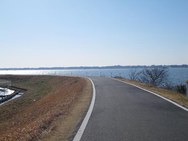 霞ヶ浦。きれいなサイクリングロードで湖岸をずっと走る。