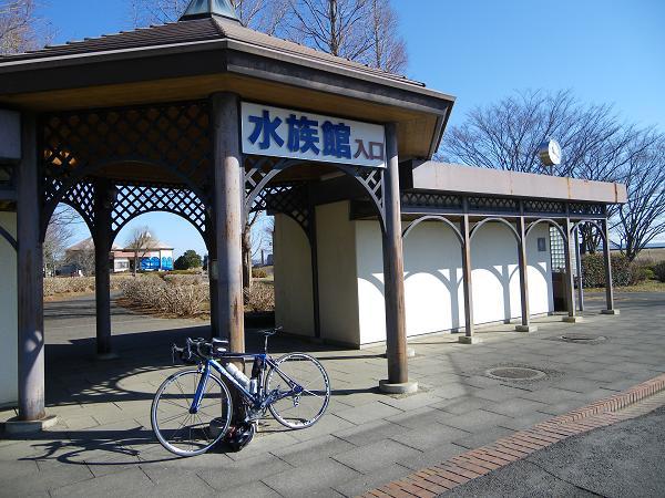折り返し地点の水族館。11:18着。