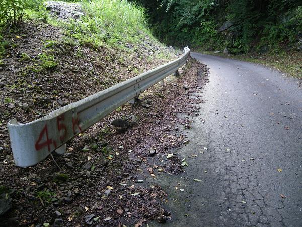 6㎞くらい走ったあたりに、ガードレールに赤く「4.5㎞」のペイントが。