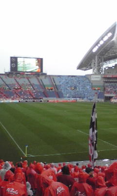 今日はゴール裏。さむいのなんの。ハーフタイムも手がかじかんで、携帯をいじる気にもなれなかった、。
