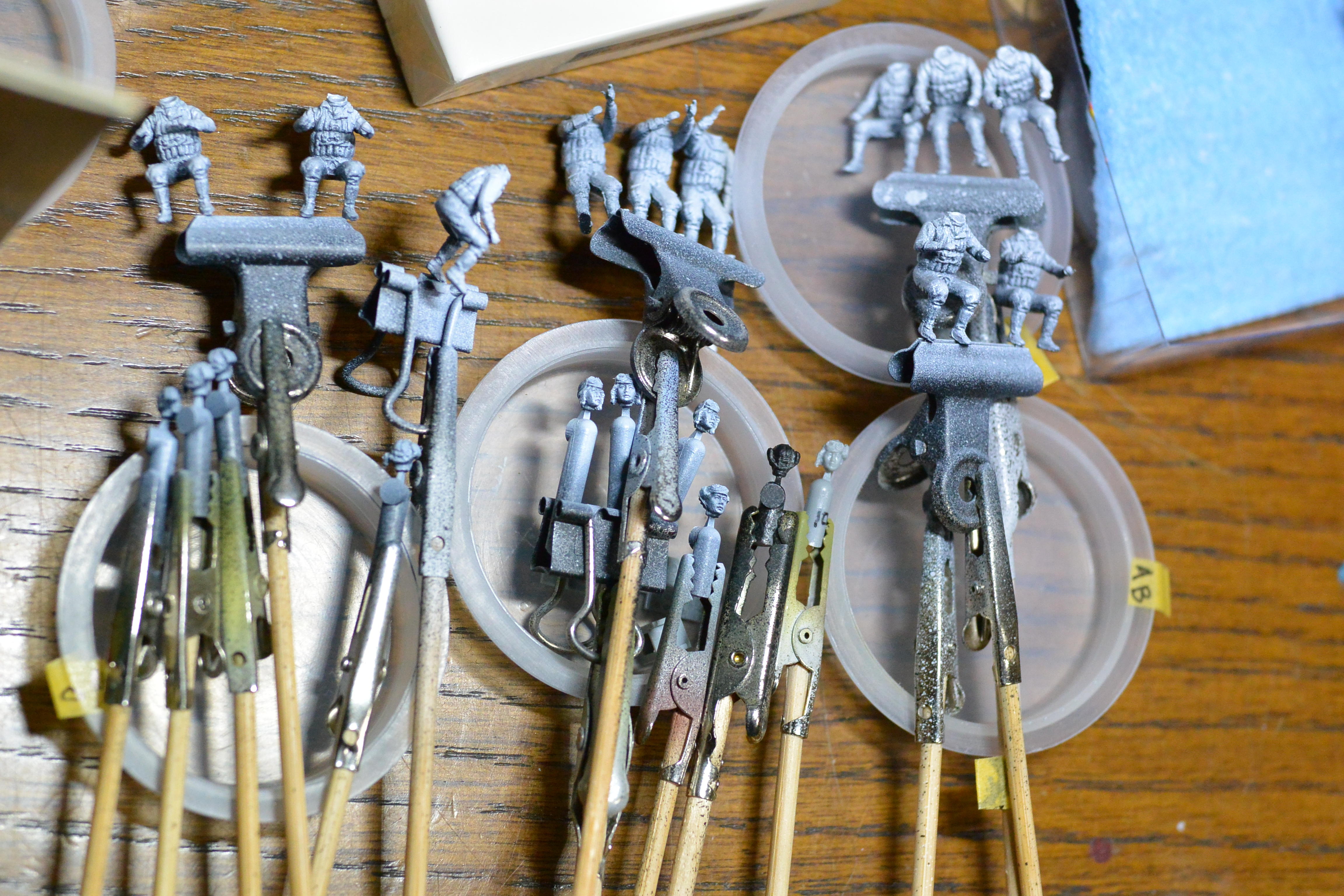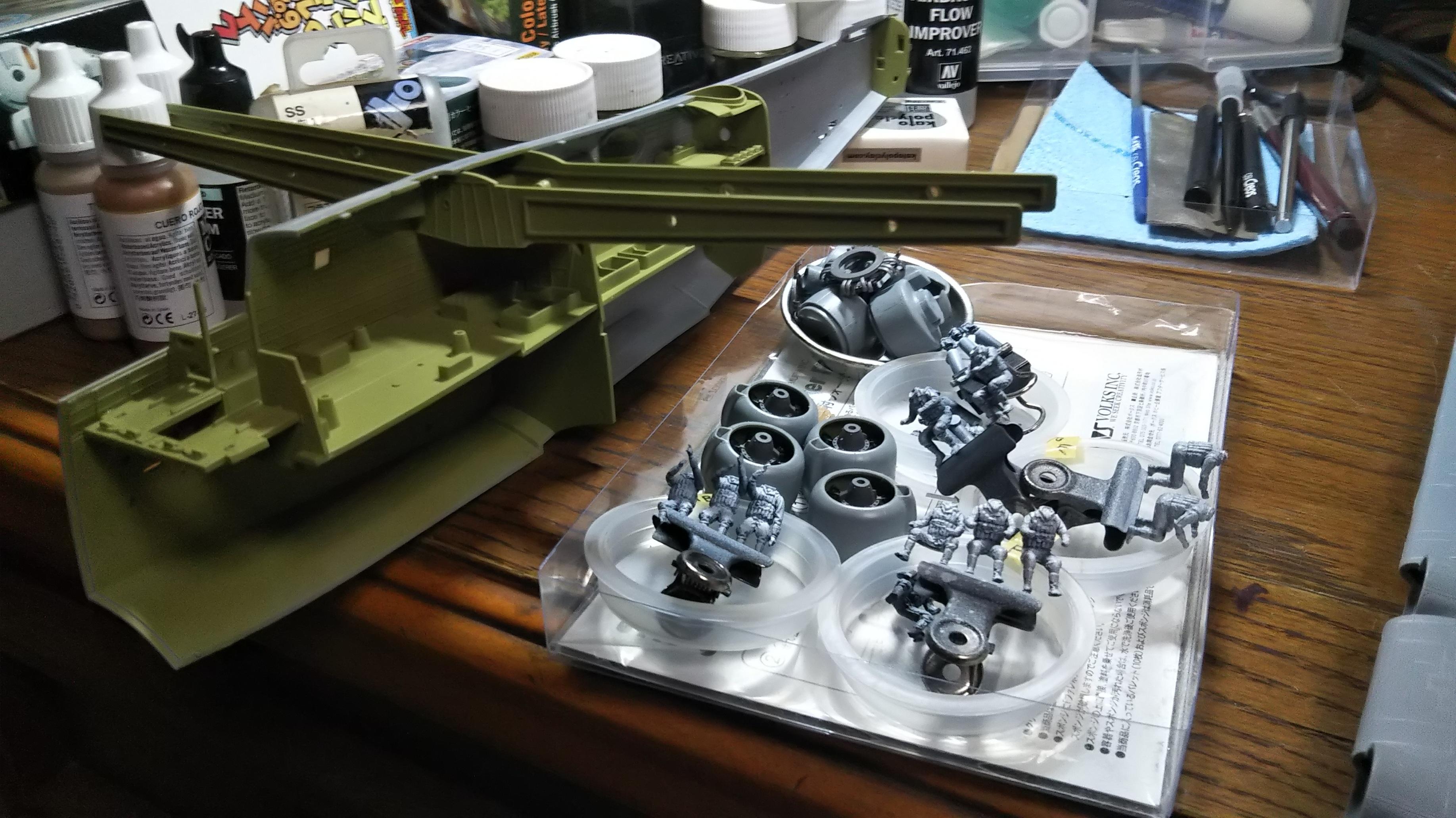 フィギュア無しを選択すべきだったかもしれないが、1/72なのに表情がはっきりわかる素晴らしい精度で、使わないともったいない。失敗したら乗せなければいいし。それにしても、全部で11体も作らなければいけないのは